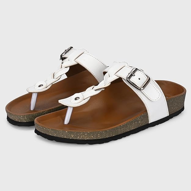 【Bounce-Back Cushioning with Shock Absorption】The footbed features a cork-pattern design with responsive bounce-back cushioning that absorbs impact with every step. Whether you’re walking on pavement or indoors, it provides smooth motion and reduces pressure on knees, hips, and lower back.