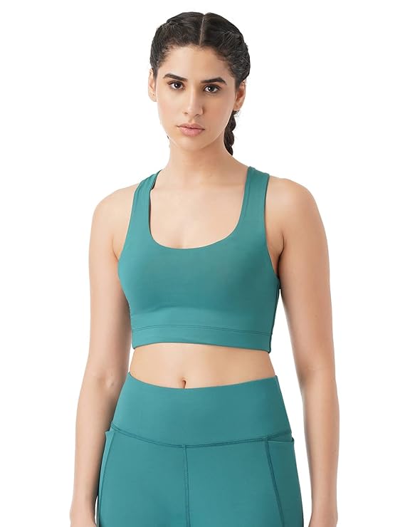 Women’s Synthetic Full-Coverage Racer Back Sports Bra -Light Padding, Removable Pads, Wire-Free, Anti-Odor, Uv Protection, Soft Seams