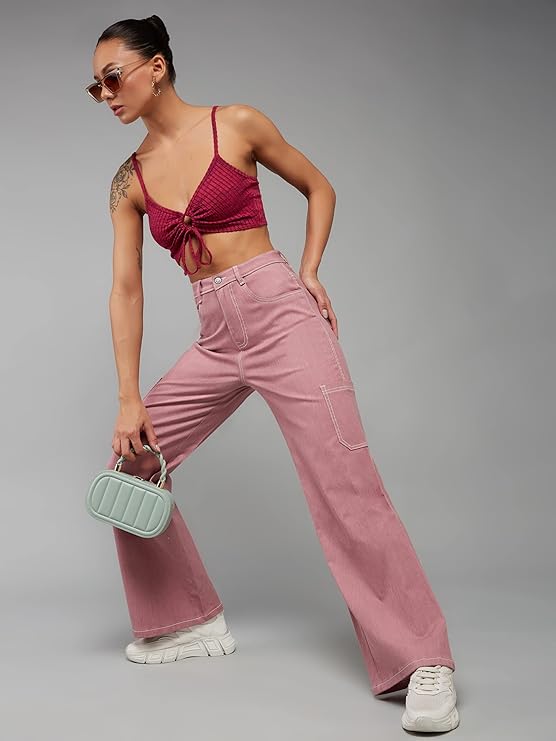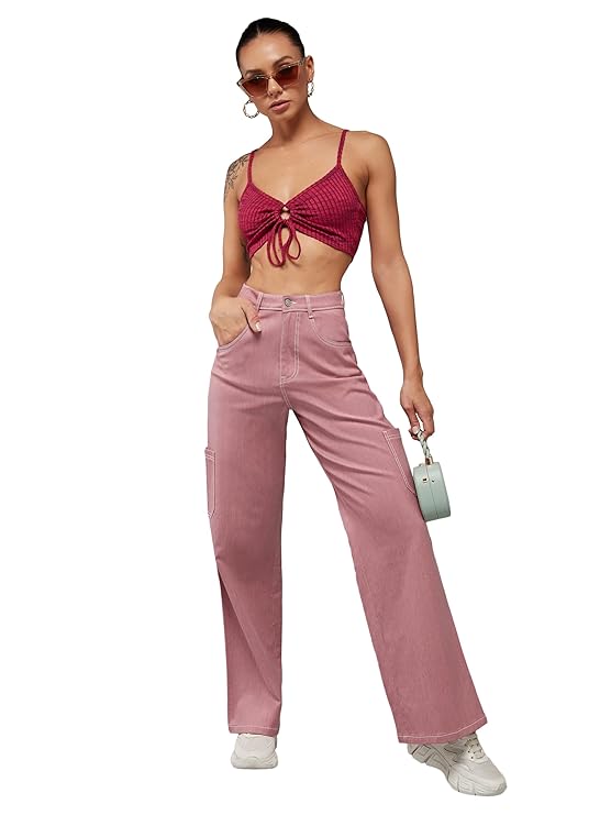 Style: Cargo | Belt: Yes | Closure: Button and Zip | Length: Regular | Pockets: Patch Pocket | Fit: Wide leg | Stretch: Yes | Rise: High rise